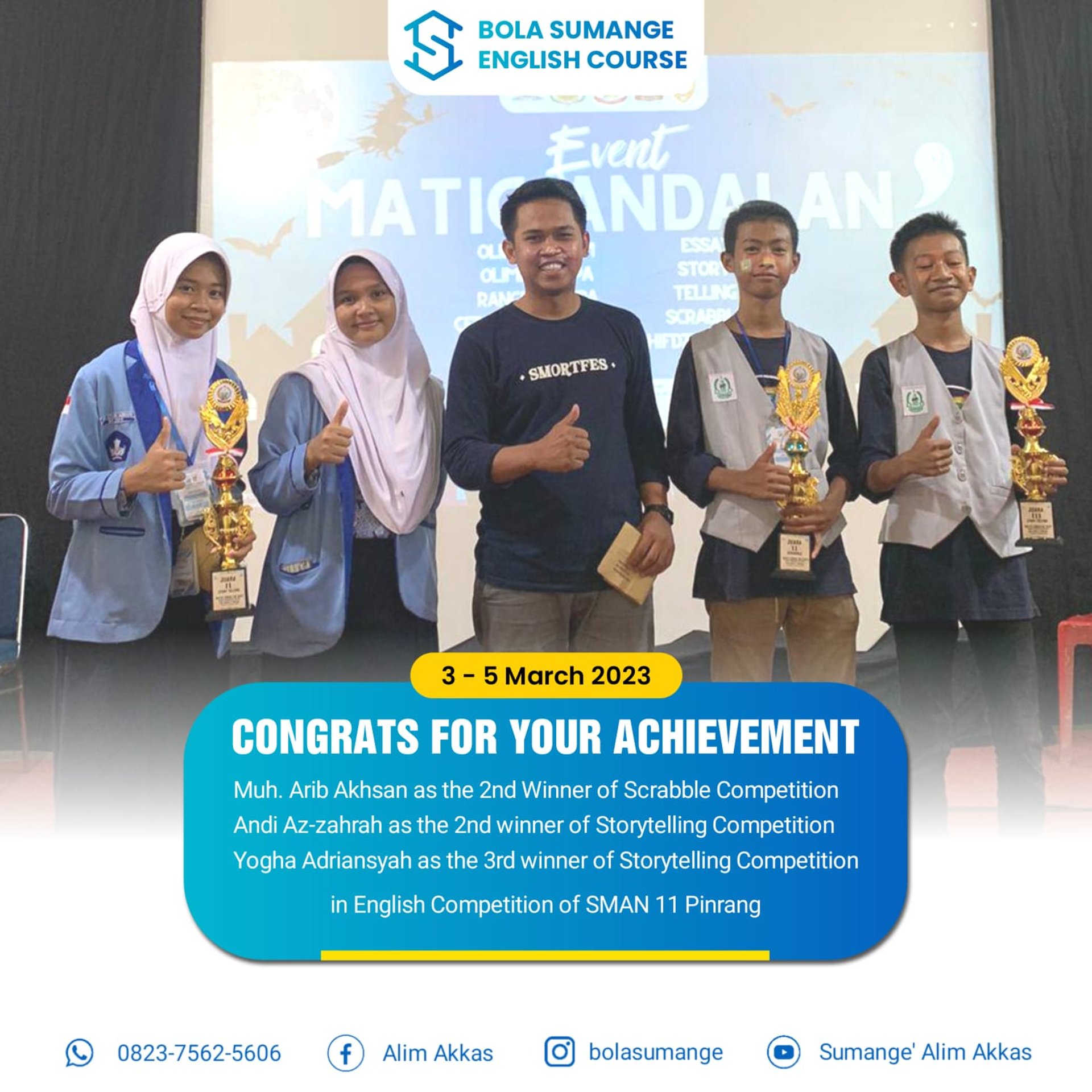 Bola Sumange Course and Training Institute (LKP Bola Sumange) is a dynamic learning hub for students and young people in Sidenreng Rappang (Sidrap) and surrounding areas. What began as a small home-based English course has grown into an institution that nurtures academic excellence and essential life skills.